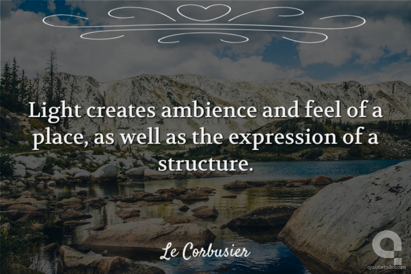 Light creates ambience and feel of a place, as well as the expression of a structure.