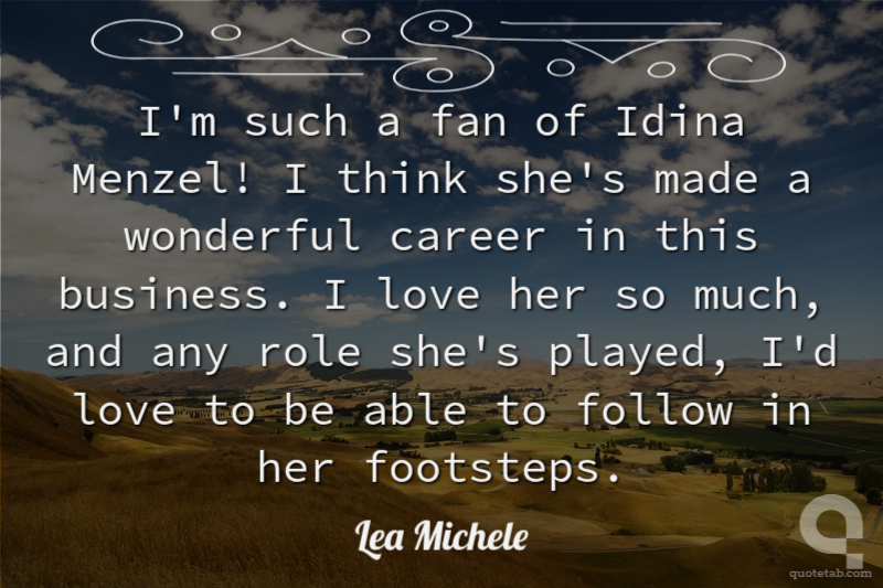 I'm such a fan of Idina Menzel! I think she's made a wonderful career in this business. I love her so much, and any role she's played, I'd love to be able to follow in her footsteps.
