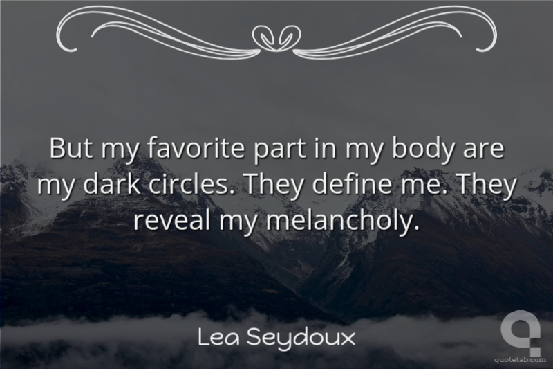 But my favorite part in my body are my dark circles. They define me. They reveal my melancholy.
