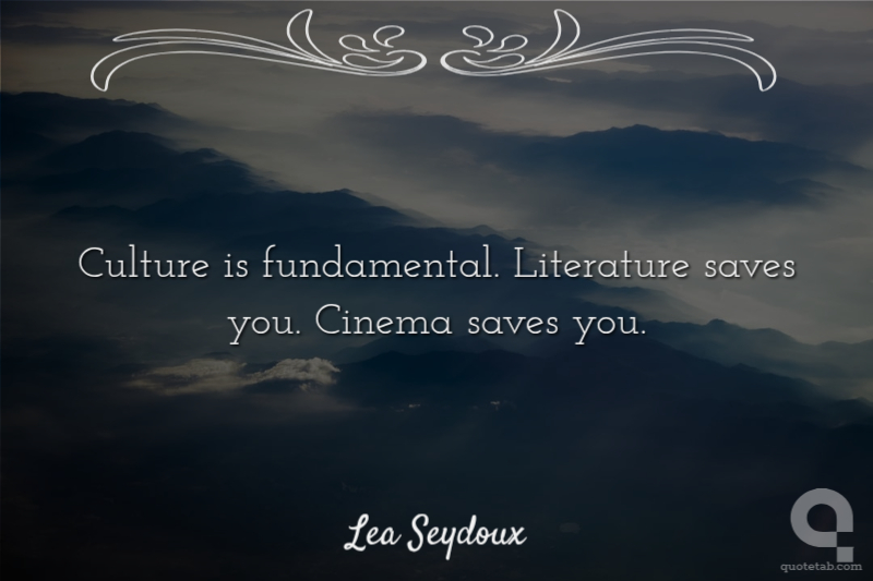 Culture is fundamental. Literature saves you. Cinema saves you.