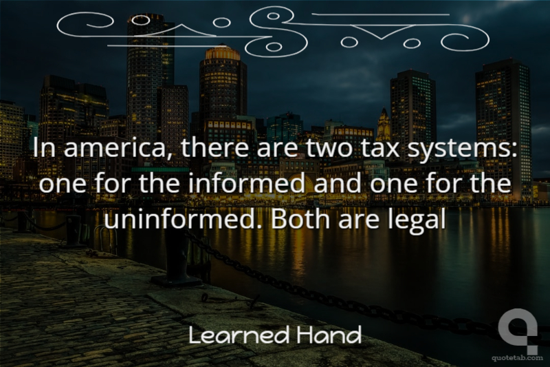 In america, there are two tax systems: one for the informed and one for the uninformed. Both are legal