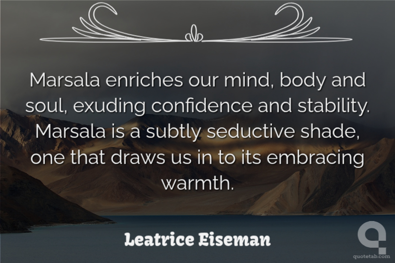Marsala enriches our mind, body and soul, exuding confidence and stability. Marsala is a subtly seductive shade, one that draws us in to its embracing warmth.