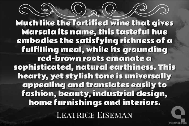 Much like the fortified wine that gives Marsala its name, this tasteful hue embodies the satisfying richness of a fulfilling meal, while its grounding red-brown roots emanate a sophisticated, natural earthiness. This hearty, yet stylish tone is universally appealing and translates easily to fashion, beauty, industrial design, home furnishings and interiors.