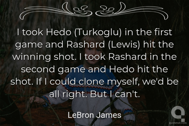 I took Hedo (Turkoglu) in the first game and Rashard (Lewis) hit the winning shot. I took Rashard in the second game and Hedo hit the shot. If I could clone myself, we'd be all right. But I can't.