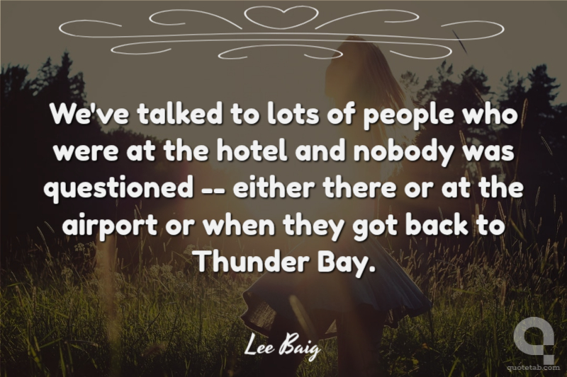 We've talked to lots of people who were at the hotel and nobody was questioned -- either there or at the airport or when they got back to Thunder Bay.