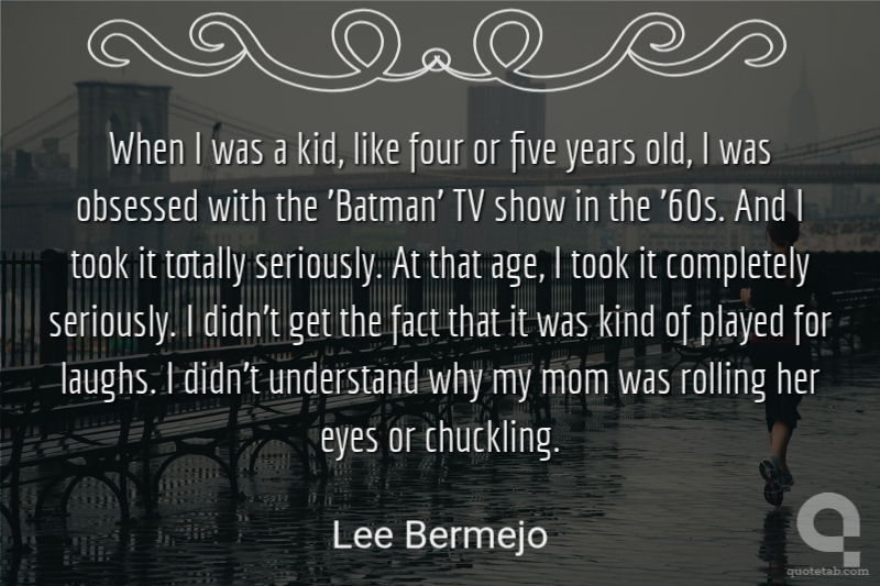 When I was a kid, like four or five years old, I was obsessed with the 'Batman' TV show in the '60s. And I took it totally seriously. At that age, I took it completely seriously. I didn't get the fact that it was kind of played for laughs. I didn't understand why my mom was rolling her eyes or chuckling.