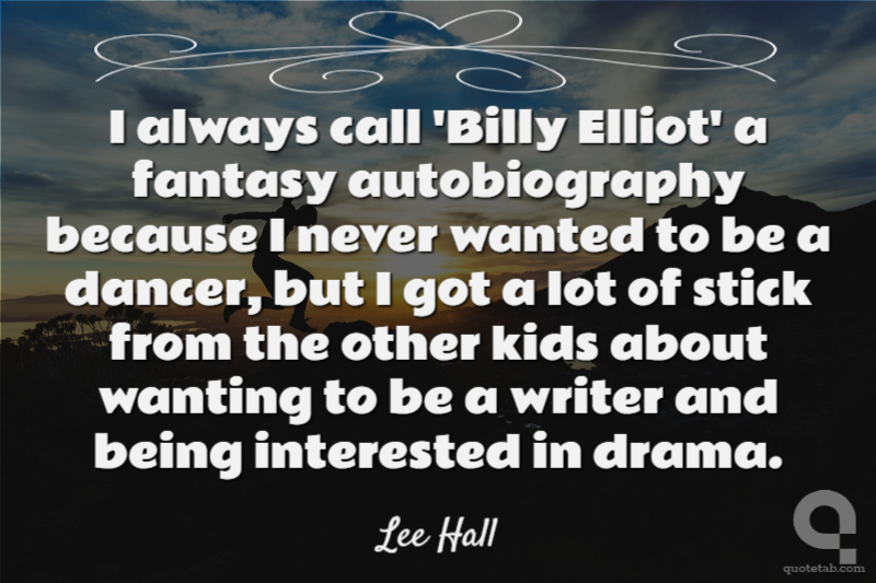 I always call Billy Elliot a fantasy autobiography because I never wanted to be a dancer, but I got a lot of stick from the other kids about wanting to be a writer and being interested in drama.