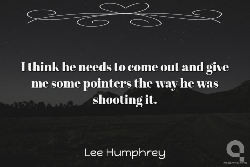 I think he needs to come out and give me some pointers the way he was shooting it.