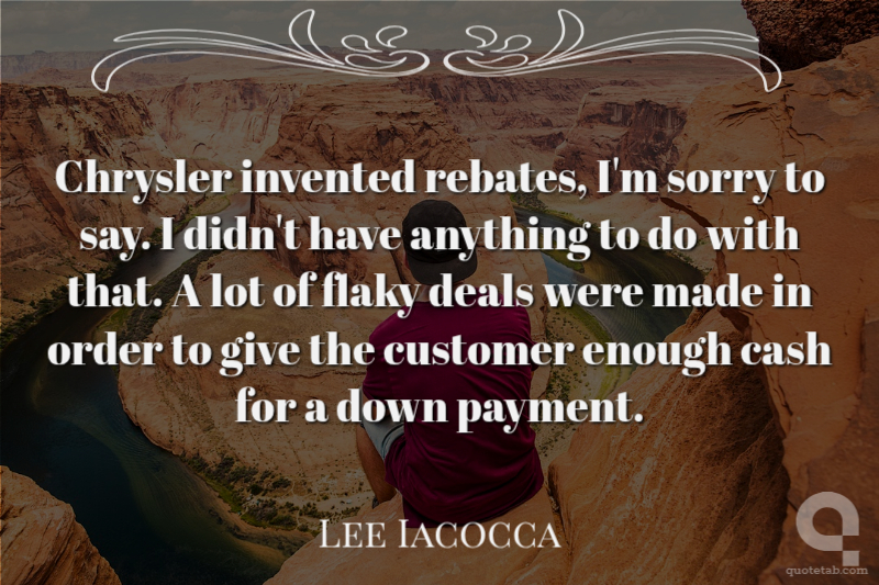 Chrysler invented rebates, I'm sorry to say. I didn't have anything to do with that. A lot of flaky deals were made in order to give the customer enough cash for a down payment.