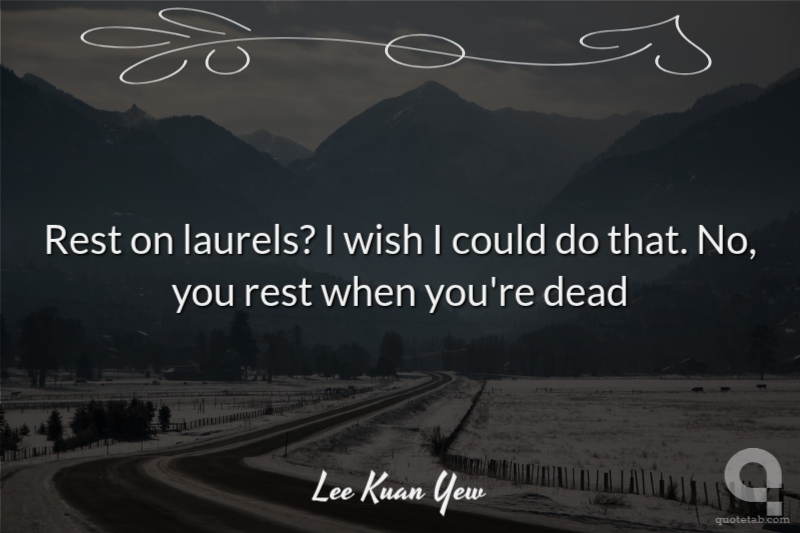 Rest on laurels? I wish I could do that. No, you rest when you're dead