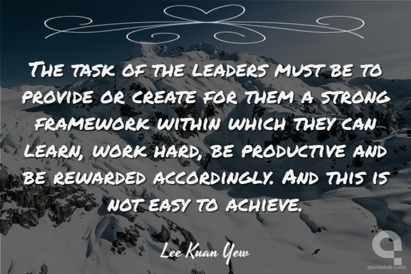 The task of the leaders must be to provide or create for them a strong framework within which they can learn, work hard, be productive and be rewarded accordingly. And this is not easy to achieve.