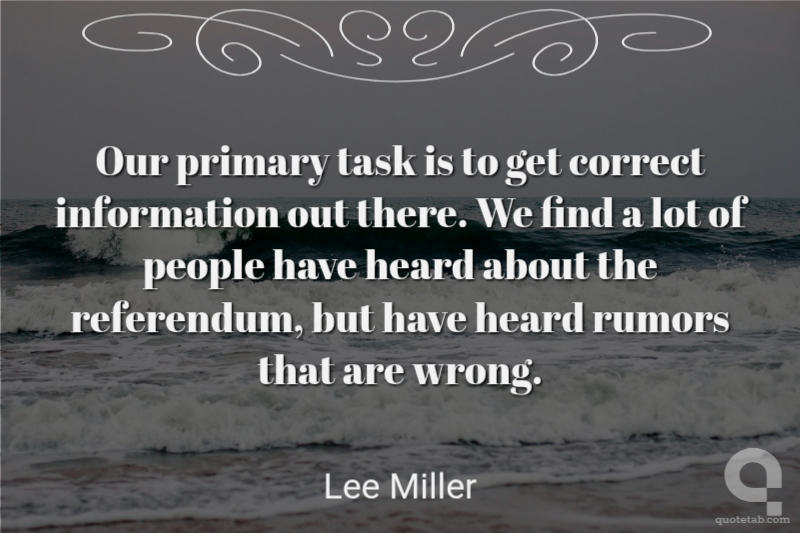 Our primary task is to get correct information out there. We find a lot of people have heard about the referendum, but have heard rumors that are wrong.