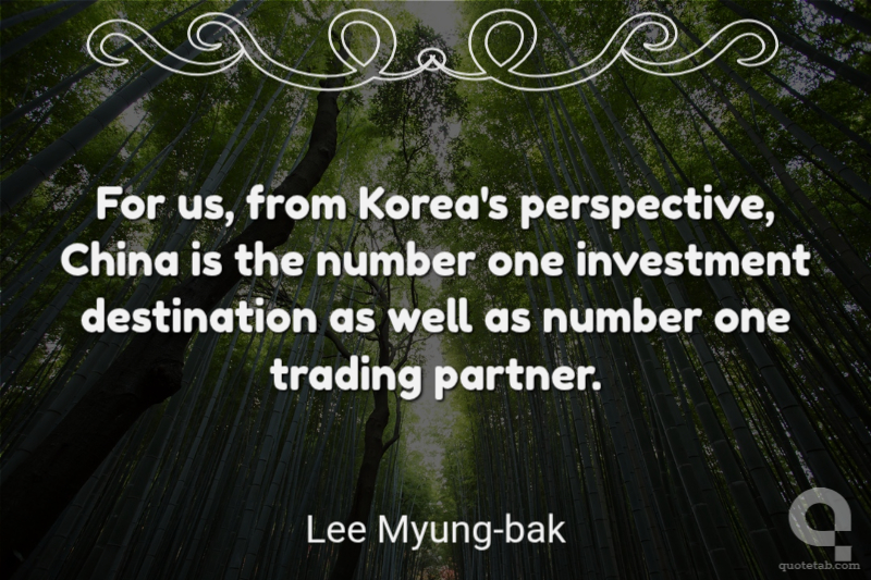 For us, from Korea's perspective, China is the number one investment destination as well as number one trading partner.