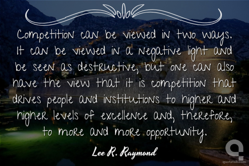 Competition can be viewed in two ways. It can be viewed in a negative light and be seen as destructive, but one can also have the view that it is competition that drives people and institutions to higher and higher levels of excellence and, therefore, to more and more opportunity.