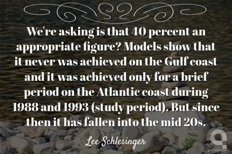 We're asking is that 40 percent an appropriate figure? Models show that it never was achieved on the Gulf coast and it was achieved only for a brief period on the Atlantic coast during 1988 and 1993 (study period). But since then it has fallen into the mid 20s.