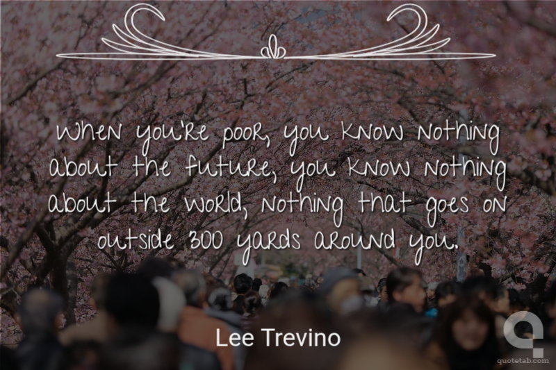When you're poor, you know nothing about the future, you know nothing about the world, nothing that goes on outside 300 yards around you.