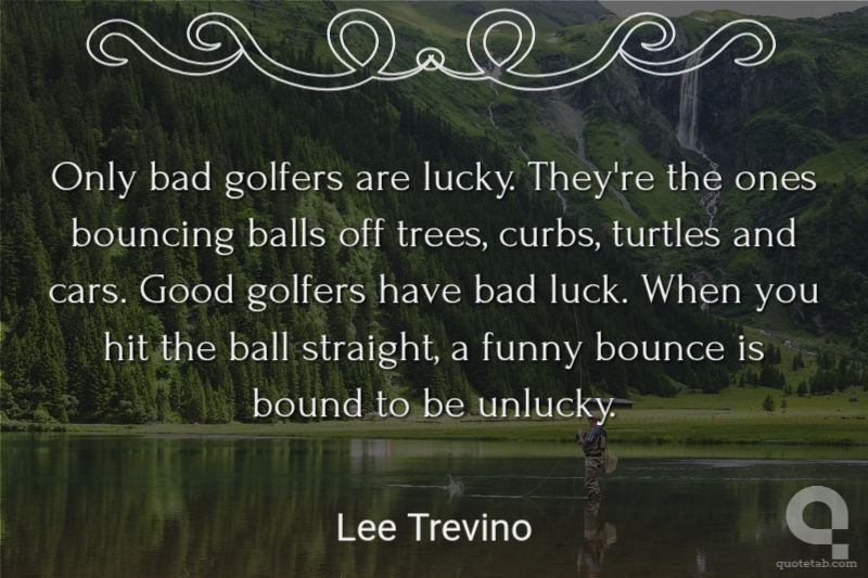 Only bad golfers are lucky. They're the ones bouncing balls off trees, curbs, turtles and cars. Good golfers have bad luck. When you hit the ball straight, a funny bounce is bound to be unlucky.