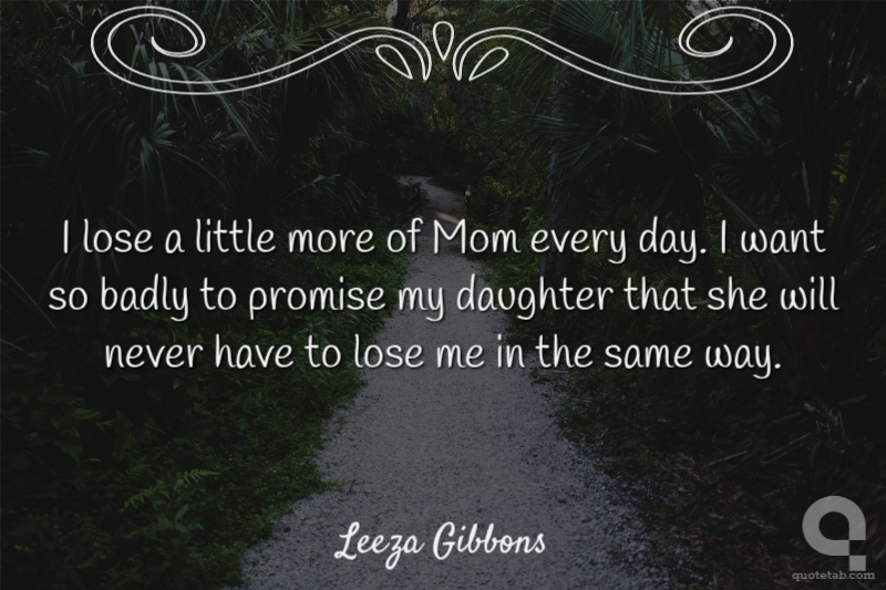I lose a little more of Mom every day. I want so badly to promise my daughter that she will never have to lose me in the same way.