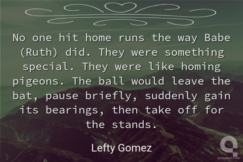 No one hit home runs the way Babe (Ruth) did. They were something special. They were like homing pigeons. The ball would leave the bat, pause briefly, suddenly gain its bearings, then take off for the stands.