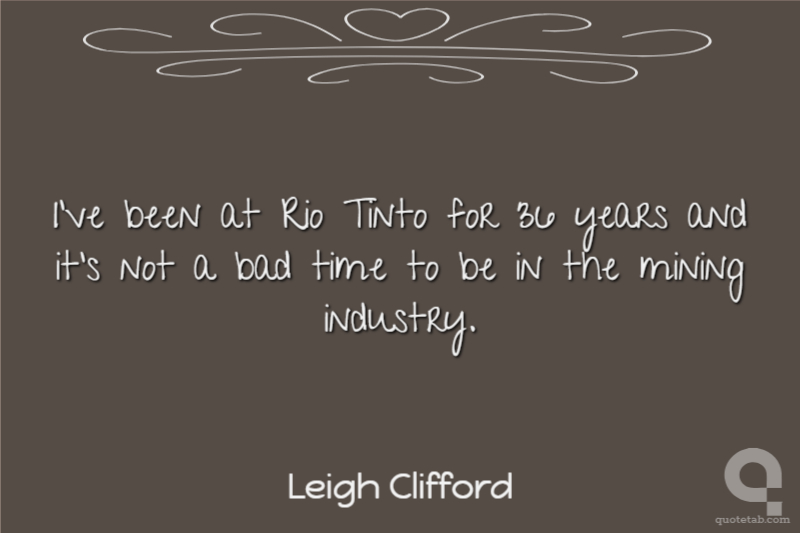 I've been at Rio Tinto for 36 years and it's not a bad time to be in the mining industry.