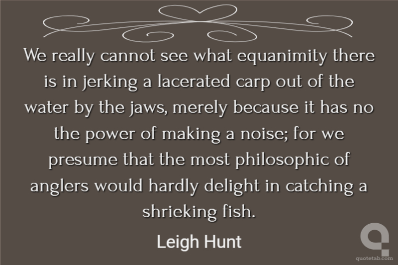 We really cannot see what equanimity there is in jerking a lacerated carp out of the water by the jaws, merely because it has no the power of making a noise; for we presume that the most philosophic of anglers would hardly delight in catching a shrieking fish.