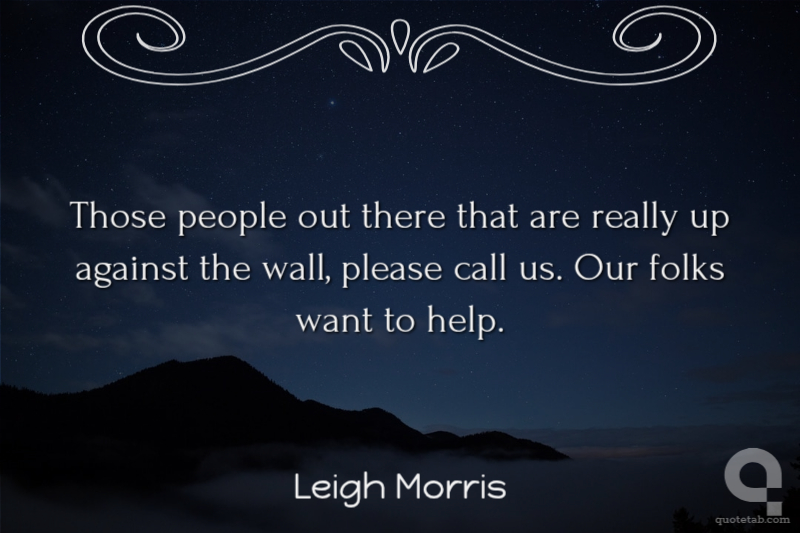 Those people out there that are really up against the wall, please call us. Our folks want to help.