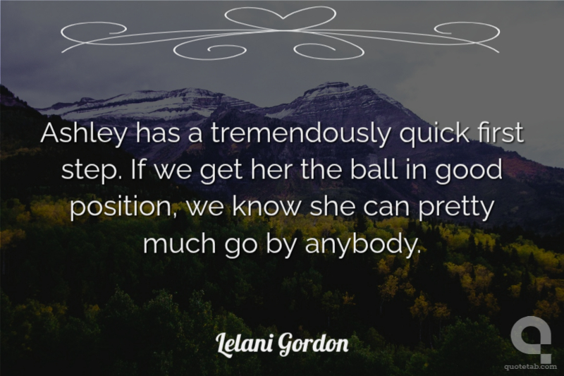 Ashley has a tremendously quick first step. If we get her the ball in good position, we know she can pretty much go by anybody.