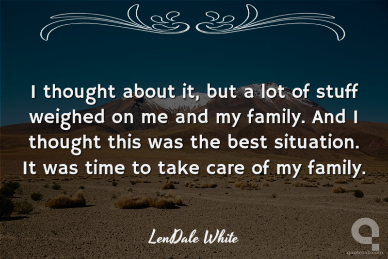 I thought about it, but a lot of stuff weighed on me and my family. And I thought this was the best situation. It was time to take care of my family.