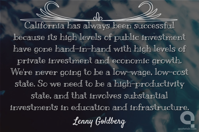 California has always been successful because its high levels of public investment have gone hand-in-hand with high levels of private investment and economic growth. We're never going to be a low-wage, low-cost state. So we need to be a high-productivity state, and that involves substantial investments in education and infrastructure.