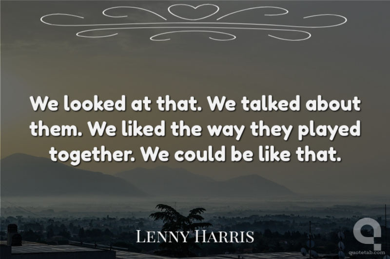 We looked at that. We talked about them. We liked the way they played together. We could be like that.