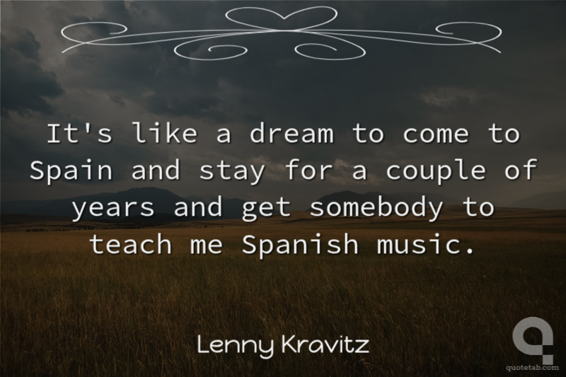 It's like a dream to come to Spain and stay for a couple of years and get somebody to teach me Spanish music.