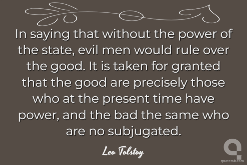 In saying that without the power of the state, evil men would rule over the good. It is taken for granted that the good are precisely those who at the present time have power, and the bad the same who are no subjugated.