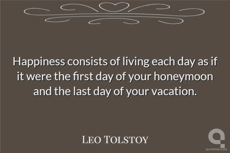 Happiness consists of living each day as if it were the first day of your honeymoon and the last day of your vacation.
