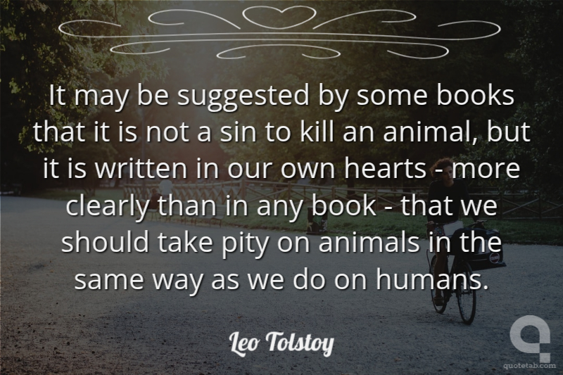 It may be suggested by some books that it is not a sin to kill an animal, but it is written in our own hearts - more clearly than in any book - that we should take pity on animals in the same way as we do on humans.