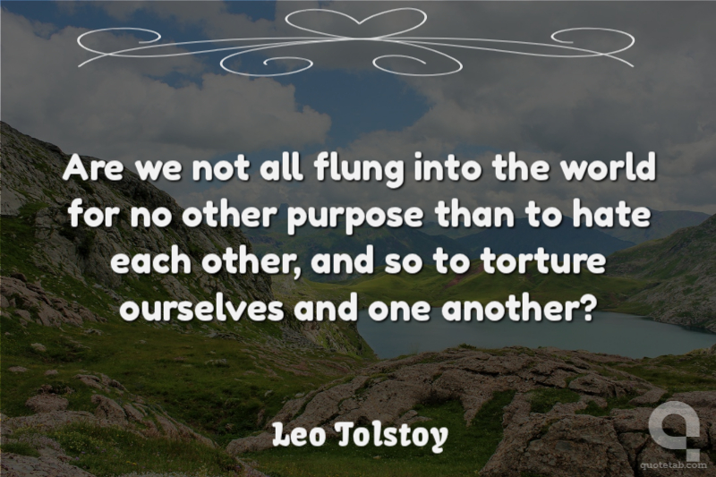 Are we not all flung into the world for no other purpose than to hate each other, and so to torture ourselves and one another?