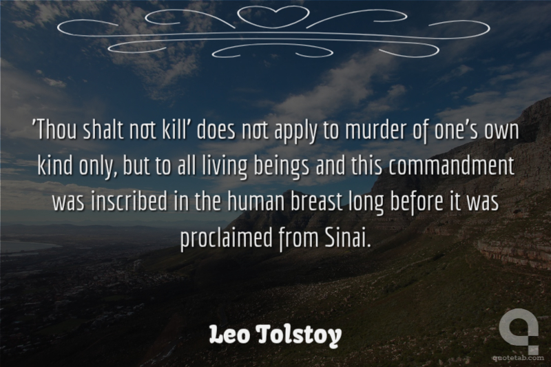 'Thou shalt not kill' does not apply to murder of one's own kind only, but to all living beings and this commandment was inscribed in the human breast long before it was proclaimed from Sinai.