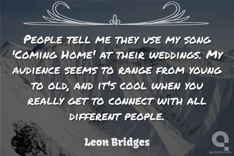 People tell me they use my song 'Coming Home' at their weddings. My audience seems to range from young to old, and it's cool when you really get to connect with all different people.