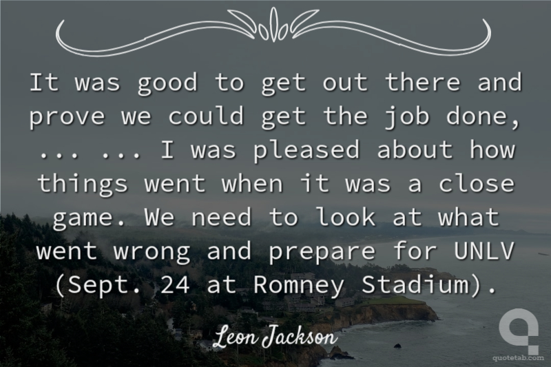 It was good to get out there and prove we could get the job done, ... ... I was pleased about how things went when it was a close game. We need to look at what went wrong and prepare for UNLV (Sept. 24 at Romney Stadium).
