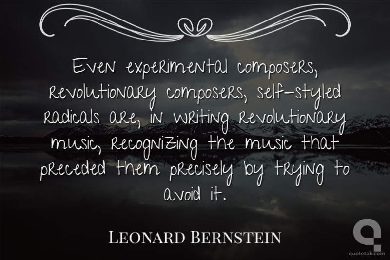 Even experimental composers, revolutionary composers, self-styled radicals are, in writing revolutionary music, recognizing the music that preceded them precisely by trying to avoid it.