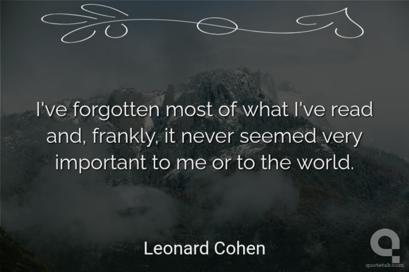 I've forgotten most of what I've read and, frankly, it never seemed very important to me or to the world.