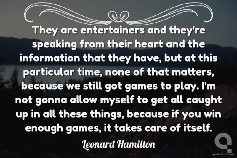 They are entertainers and they're speaking from their heart and the information that they have, but at this particular time, none of that matters, because we still got games to play. I'm not gonna allow myself to get all caught up in all these things, because if you win enough games, it takes care of itself.