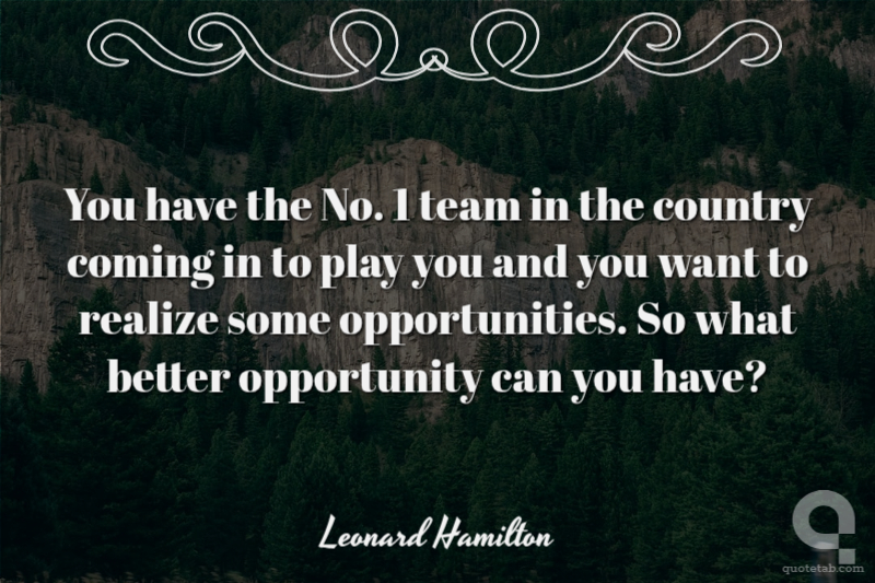 You have the No. 1 team in the country coming in to play you and you want to realize some opportunities. So what better opportunity can you have?
