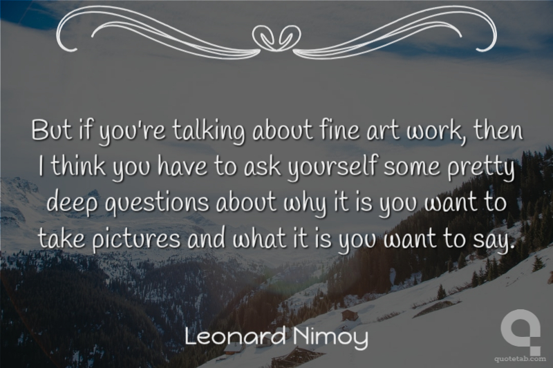 But if you're talking about fine art work, then I think you have to ask yourself some pretty deep questions about why it is you want to take pictures and what it is you want to say.