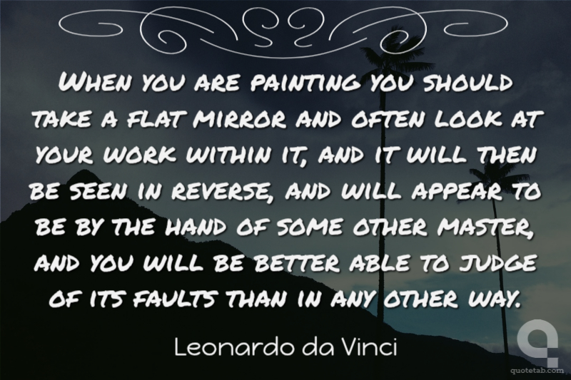 When you are painting you should take a flat mirror and often look at your work within it, and it will then be seen in reverse, and will appear to be by the hand of some other master, and you will be better able to judge of its faults than in any other way.
