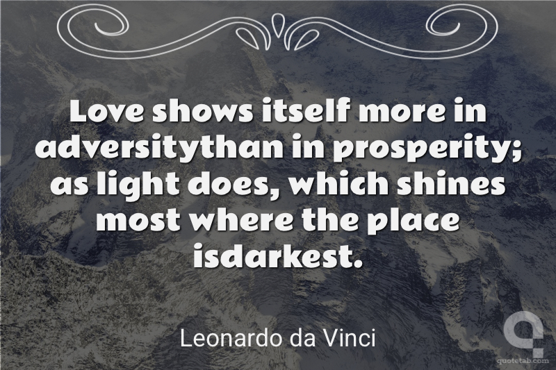 Love shows itself more in adversitythan in prosperity; as light does, which shines most where the place isdarkest.
