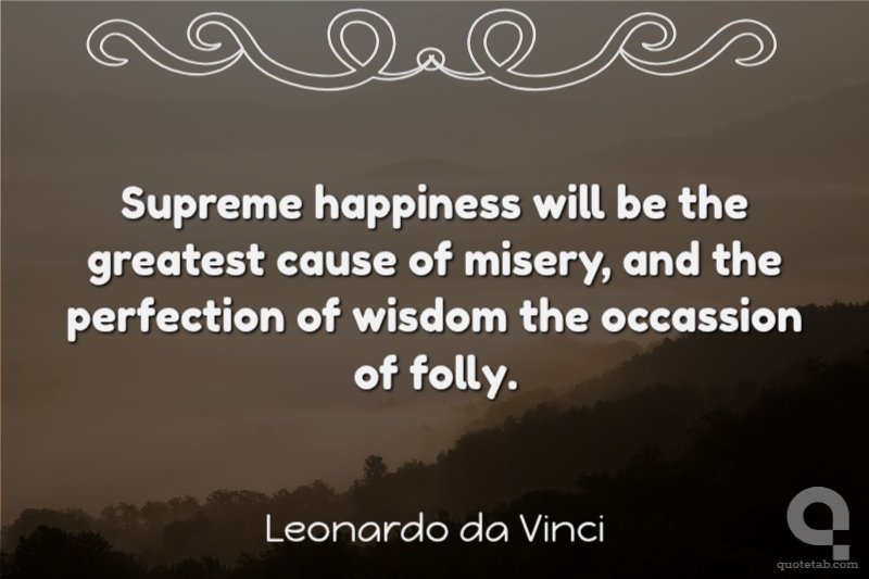 Supreme happiness will be the greatest cause of misery, and the perfection of wisdom the occassion of folly.