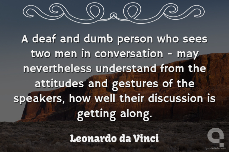 A deaf and dumb person who sees two men in conversation - may nevertheless understand from the attitudes and gestures of the speakers, how well their discussion is getting along.