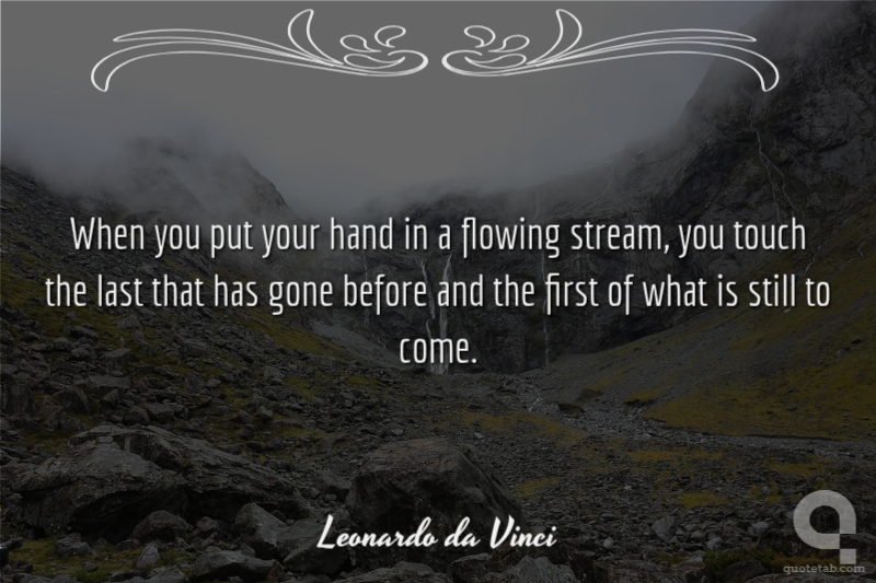 When you put your hand in a flowing stream, you touch the last that has gone before and the first of what is still to come.