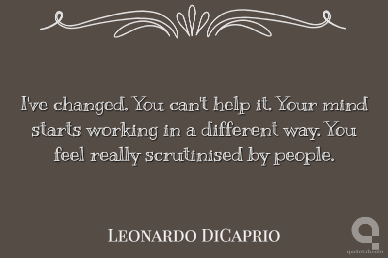 I've changed. You can't help it. Your mind starts working in a different way. You feel really scrutinised by people.