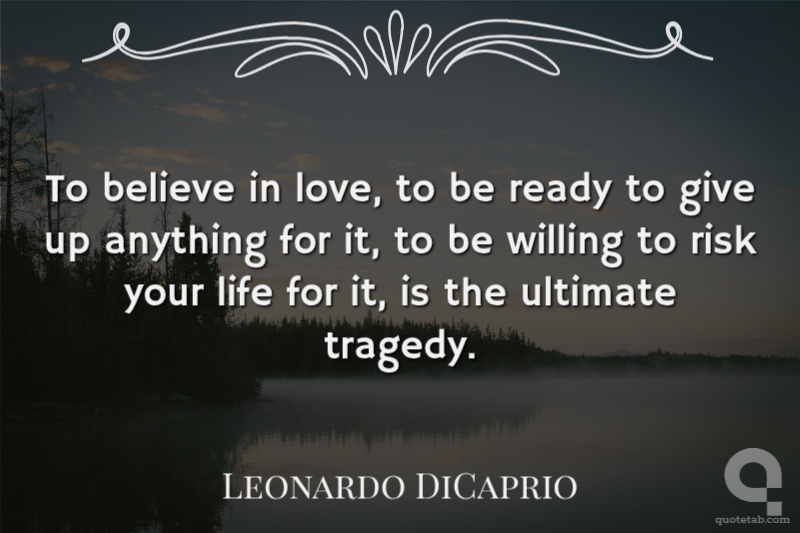 To believe in love, to be ready to give up anything for it, to be willing to risk your life for it, is the ultimate tragedy.